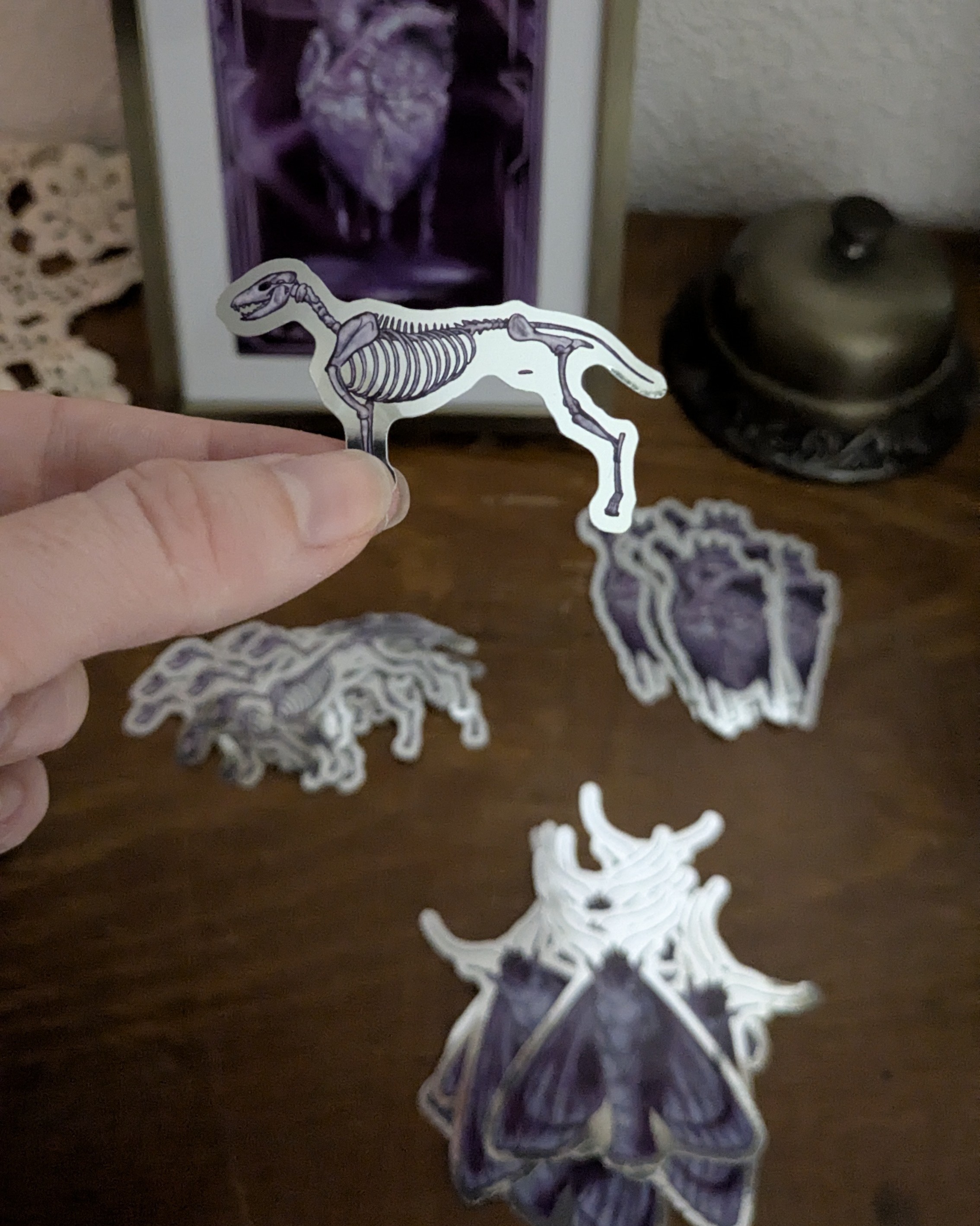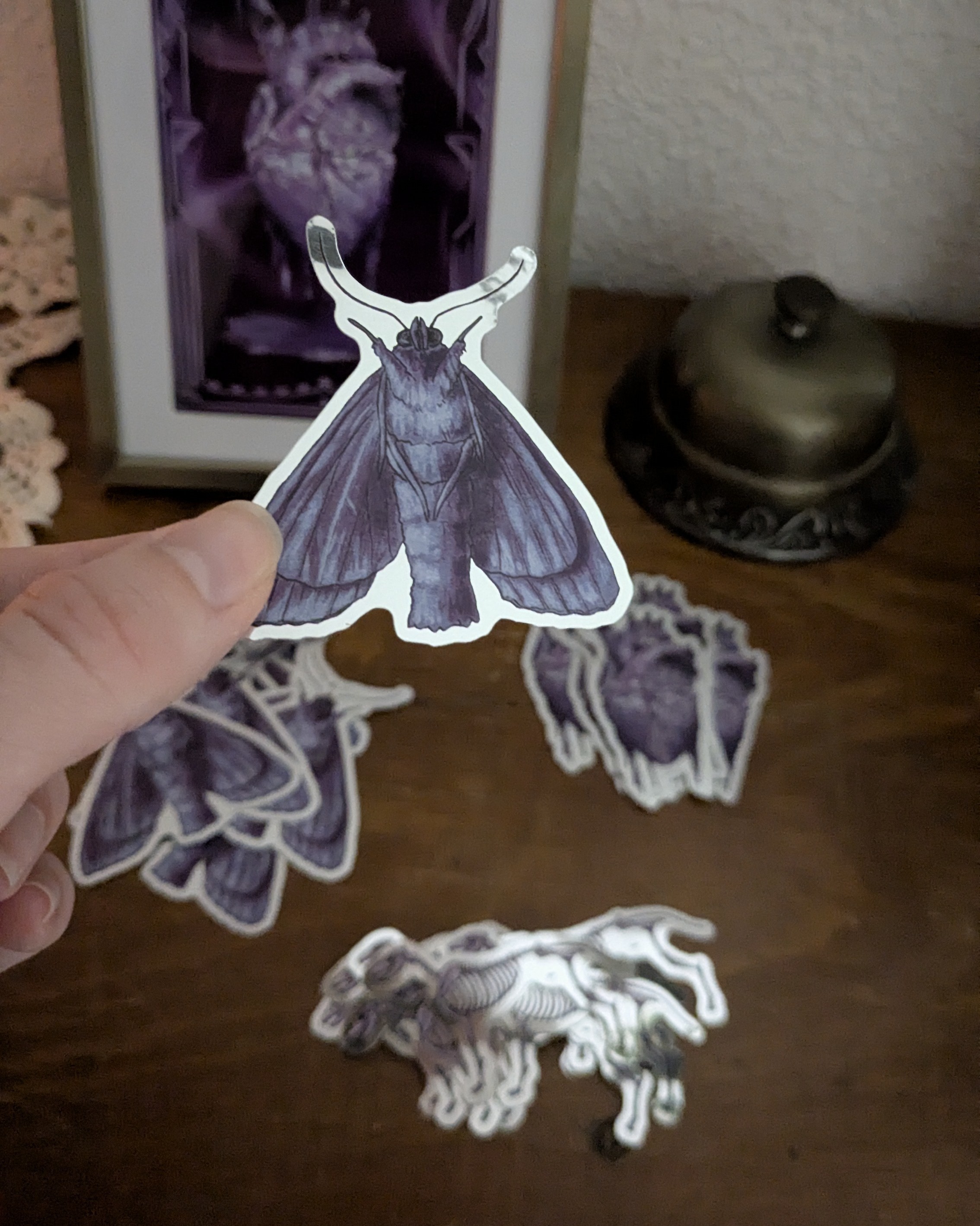 Plongez dans une ambiance nocturne et envoûtante avec cette série de stickers inspirés du mystique, de l’anatomique et des créatures de l’ombre.