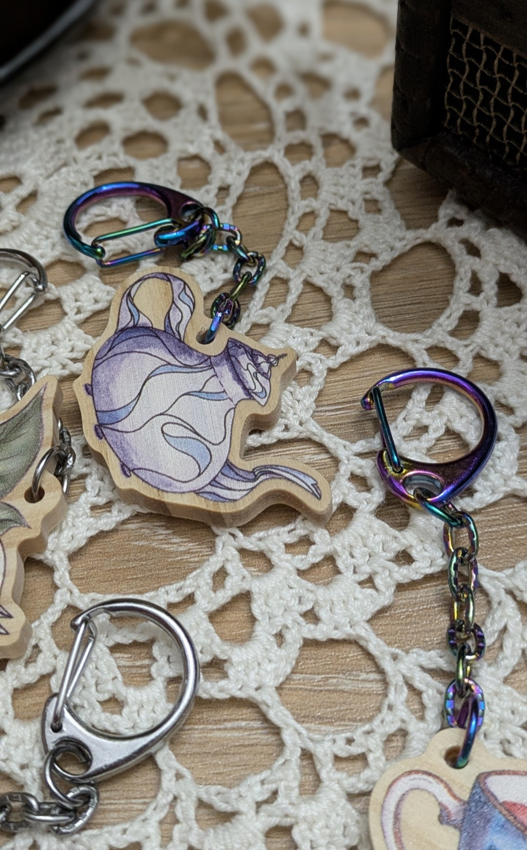 Chaque porte-clé est imprimé en haute qualité, avec un contour miroir légèrement irisé qui capte la lumière et apporte une touche magique et onirique à vos carnets, téléphones, ordinateurs ou journaux créatifs.